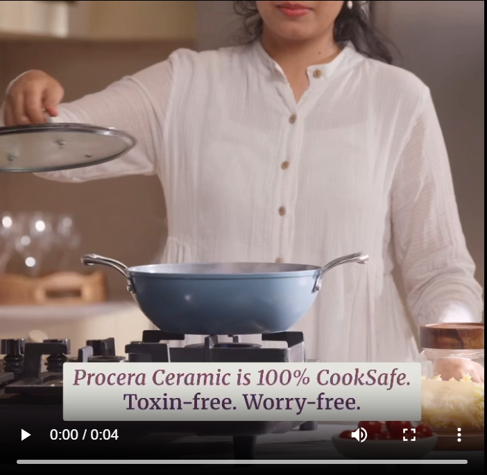 At its core is Swiss-engineered Procera™ ceramic, free from PFAS, Teflon and 300+ toxins. The Ceramic Kadai has a naturally non-stick surface, cutting oil usage by 50%.